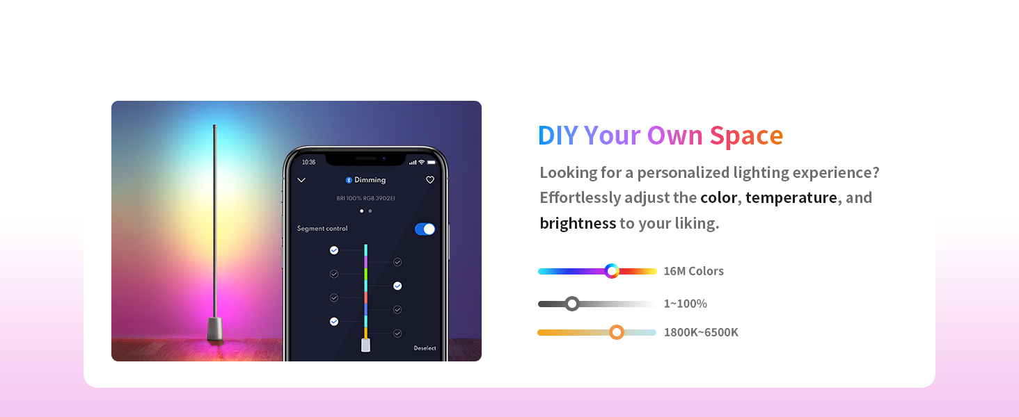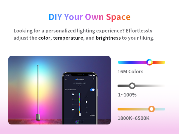 Floor Lamp (Lamp Base*1, Metal Tube*2,Top Metal Tube*1,Silicone Strip Light*1, Screws*6)