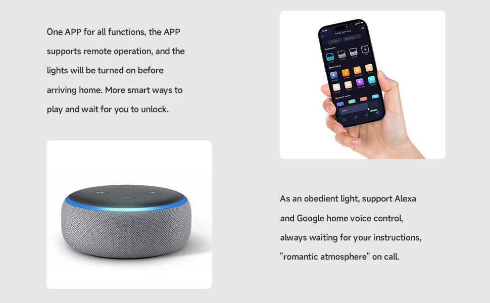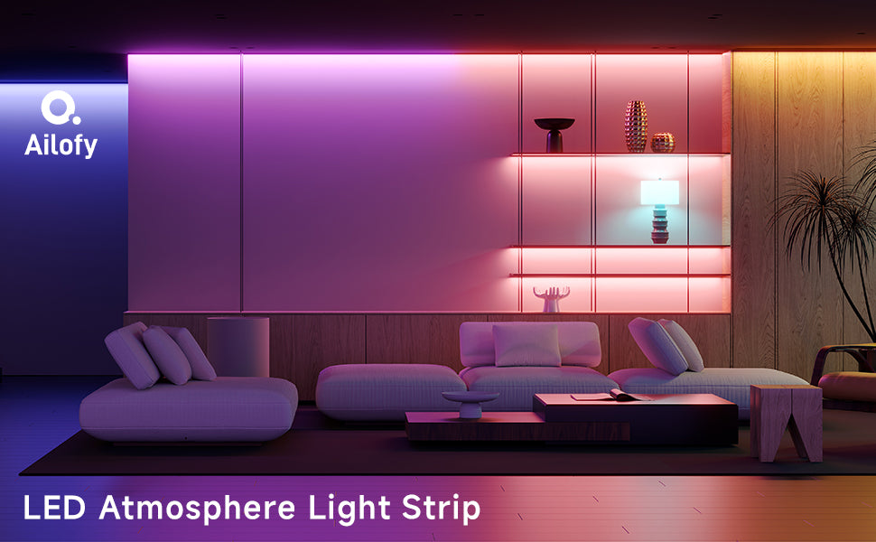 Customizable Atmosphere: The LED strip lighting has 16 million color choices, and you can make various DIY settings in the Ailofy app to achieve multi scene settings and fully control the atmosphere in the room. Effortlessly transform your space into a peaceful oasis or vibrant party environment. Let your creativity shine when you customize lighting to match your mood and preferences.