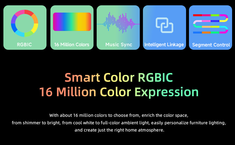 Sync to Music: Based on a highly sensitive microphone , the color of the Leds lights for bedroom changes of the rhythm of the sound . Realize synchronization between lighting and music rhythm , bringing an immersive audio-visual experience . The dance of lights and changes from color perfectly harmonized with the rhythm of the music , enhancing the atmosphere of the room , adding vitality to your listening process , and making your gathering more romantic.