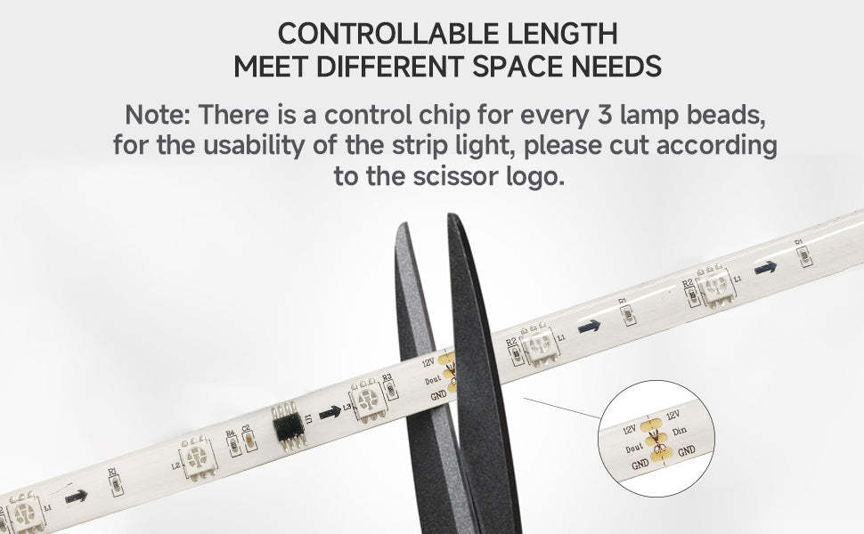 Easy to Install: Simply attach the LED strip lights for bedroom to any dry, clean surface, and use the clips to reinforce them for more security. The LED lights for room is cuttable, It can be cut every 3 leds along with the cutting marks, without damaging the rest of the lights. Download the Ailofy app, connect the strip lights to your phone, and you are ready to go.
